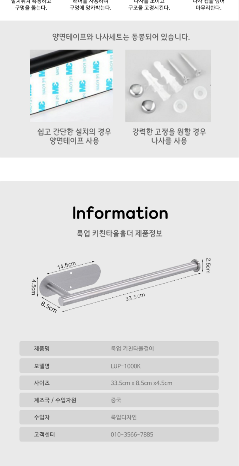 | 품명 및 모델명 | 룩업 키친타월 걸이 | 인증/허가 사항 | 해당사항없음 |