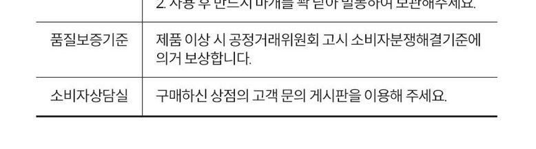 - ㆍ교환/반품에 관한 일반적인 사항은 판매자가 제시사항보다 관계법령이 우선합니다.