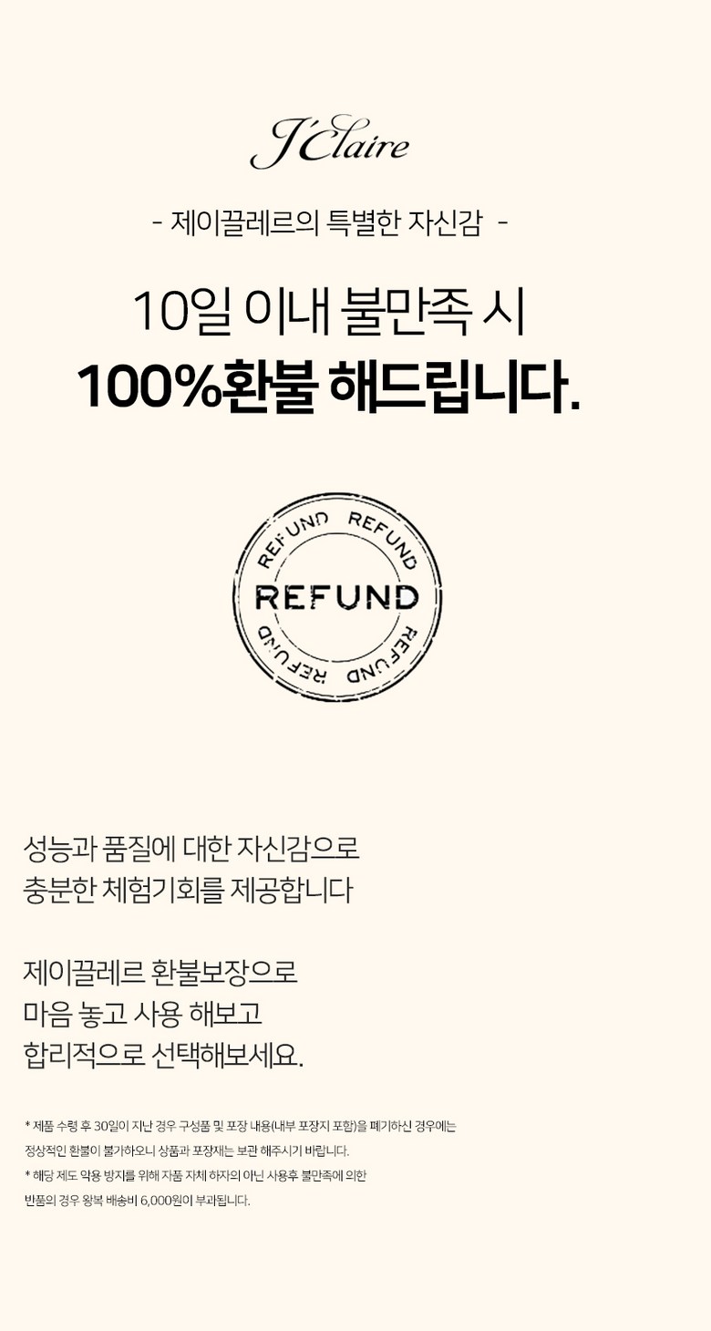 - ㆍ모니터 해상도의 차이로 인해 색상이나 이미지가 실제와 달라, 고객이 단순 변심으로 교환/반품을 무료로 요청하는 경우