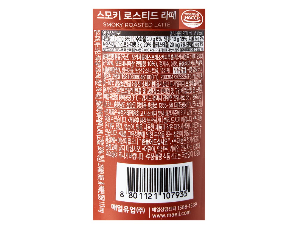 | 제품명 | 바리스타룰스 스모키 로스티드 라떼 | 식품의 유형 | 컨텐츠 참조 |
