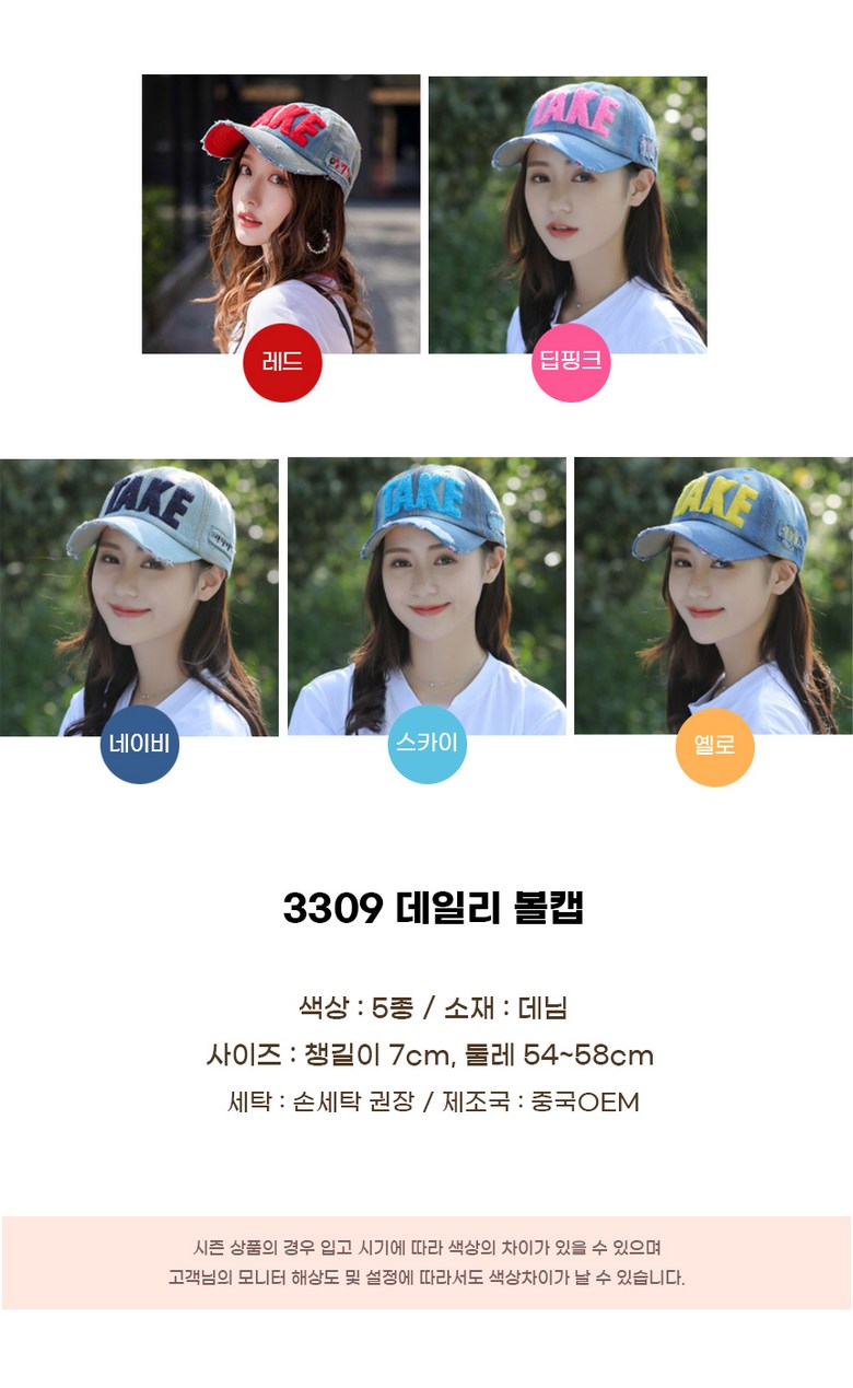 히트앤씨 3309 데일리 볼캡 여성모자 청모자 야구모자 빈티지