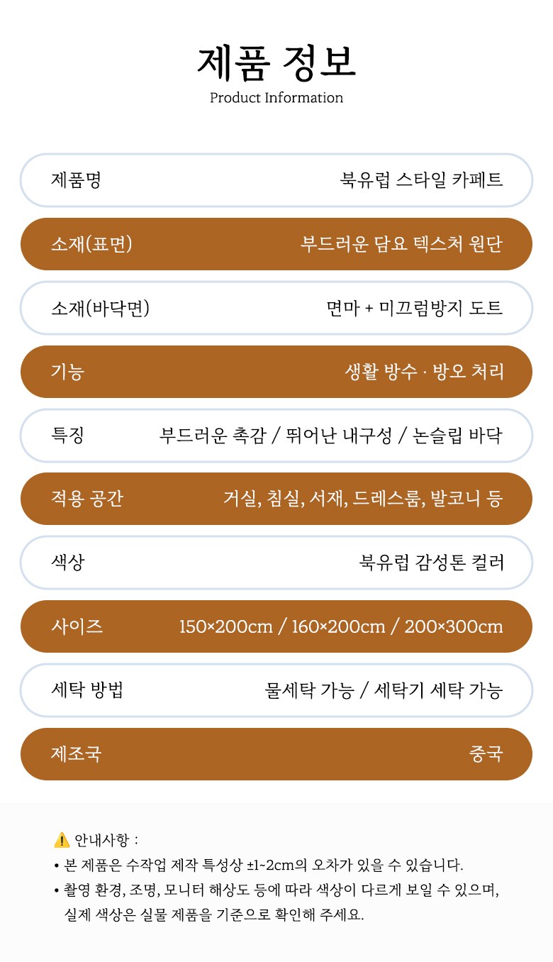 | 품명 및 모델명 | JKMN 북유럽 거실고급카페트 방수 미끄럼방 카페트 | 인증/허가 사항 | 상품 상세페이지 참조 |