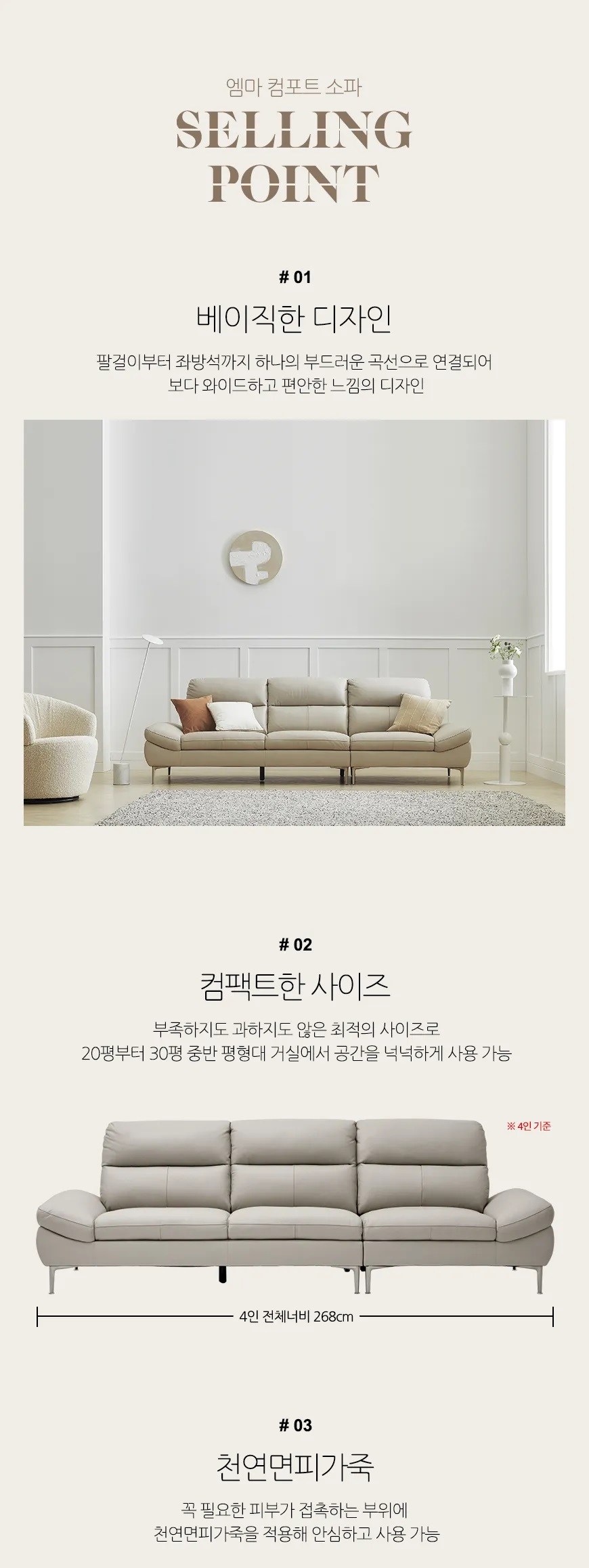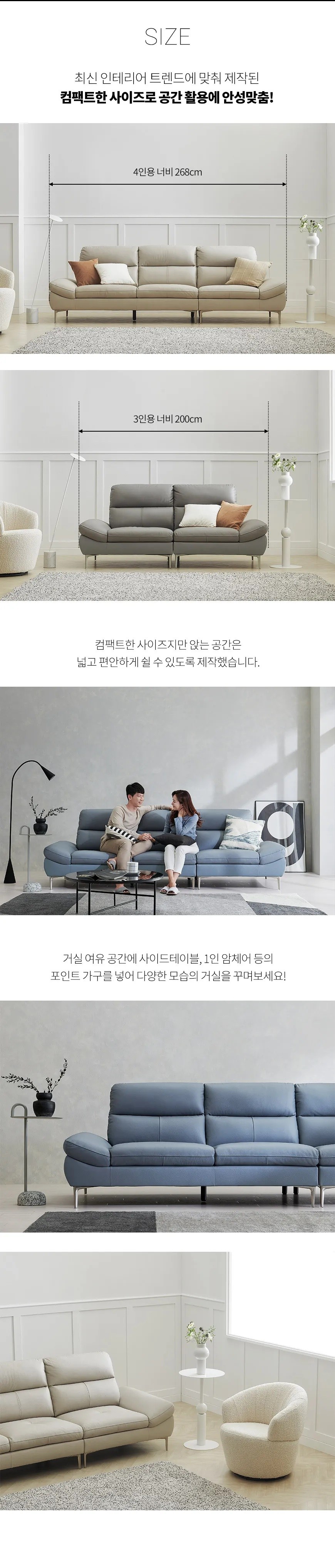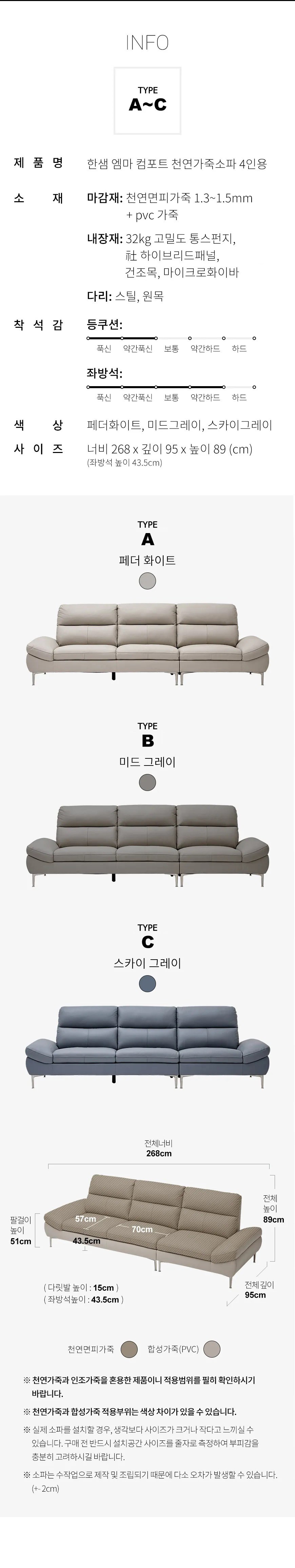- 사이즈: 너비 268cm x 깊이 95cm x 높이 89cm