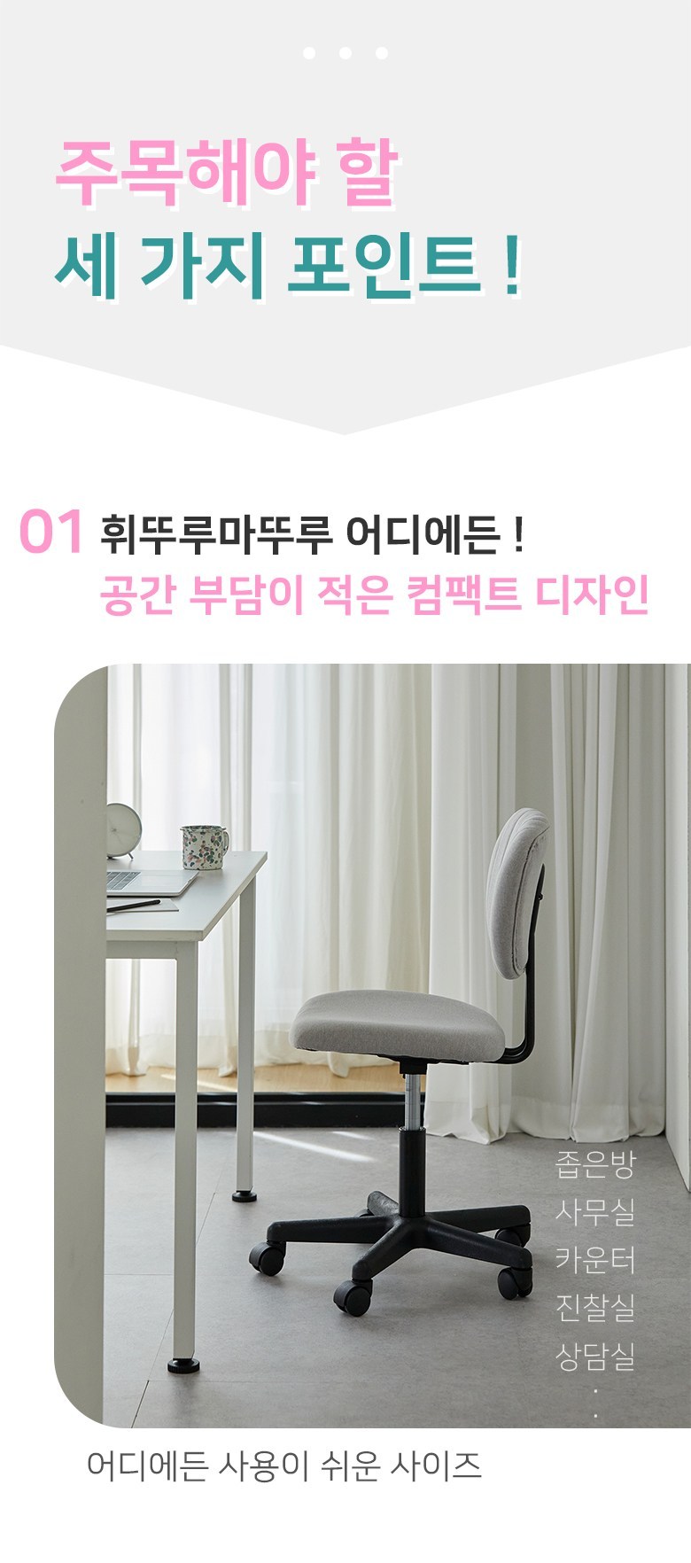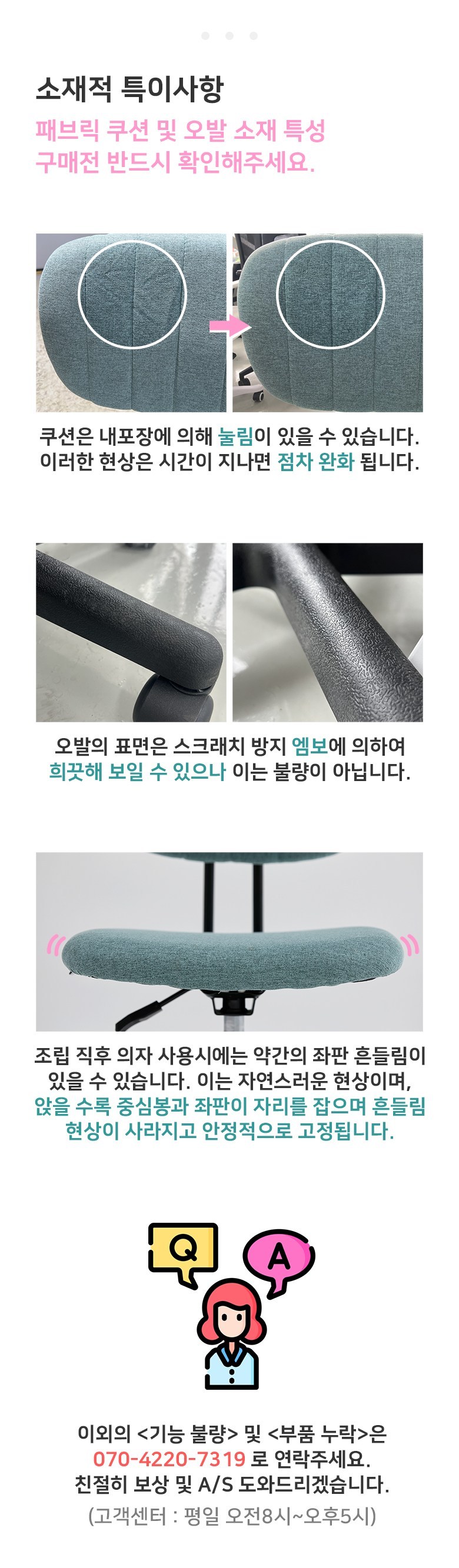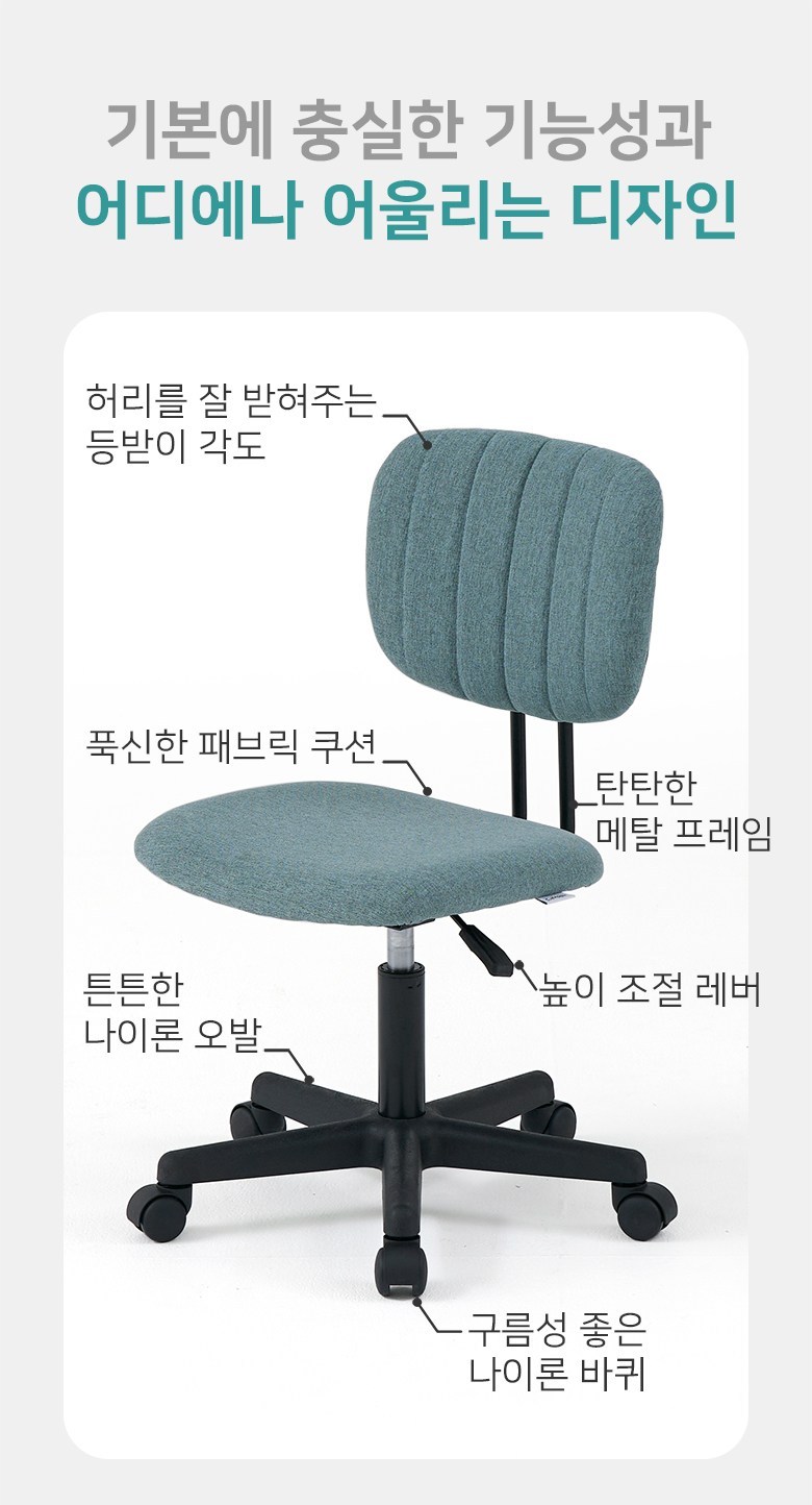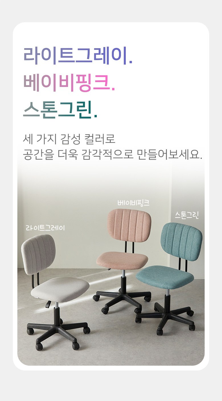 | 색상 | 라이트그레이, 베이비핑크, 스톤그린 | 구성품 | 의자 본품 1개 |