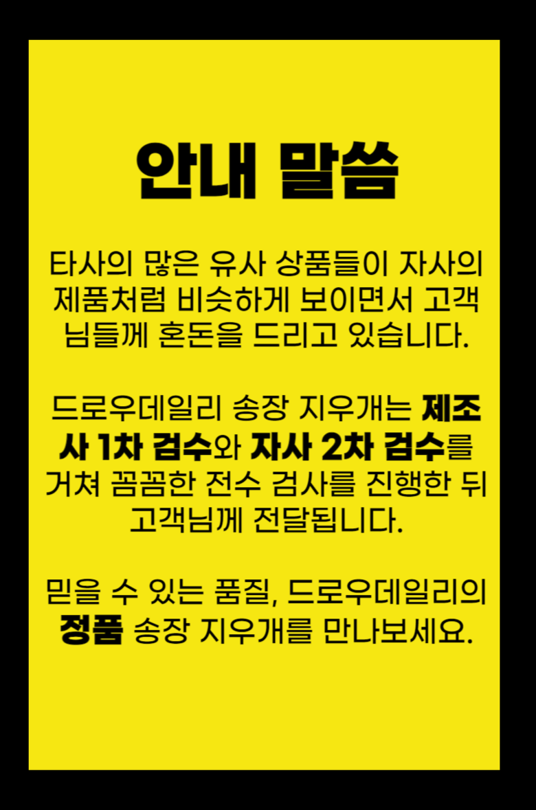 - ㆍ모니터 해상도의 차이로 인해 색상이나 이미지가 실제와 달라, 고객이 단순 변심으로 교환/반품을 무료로 요청하는 경우