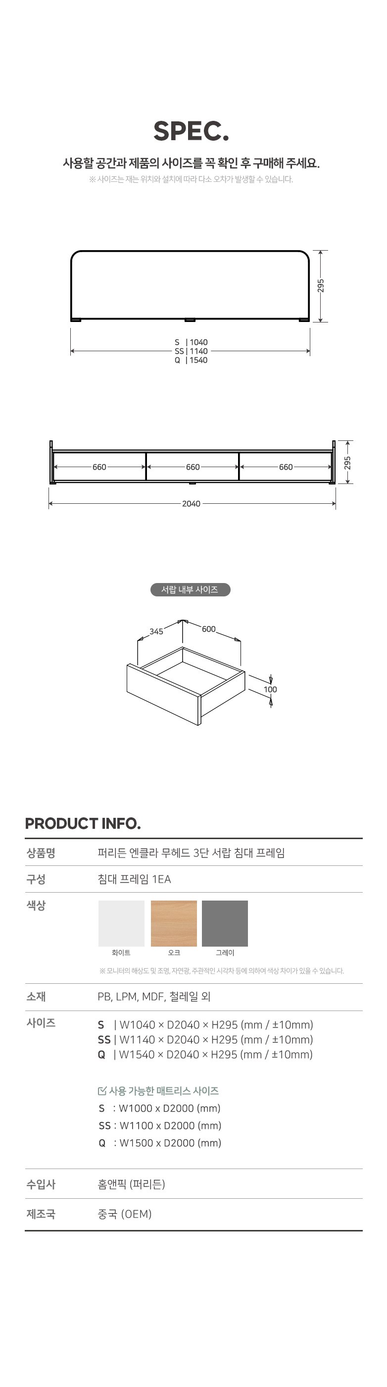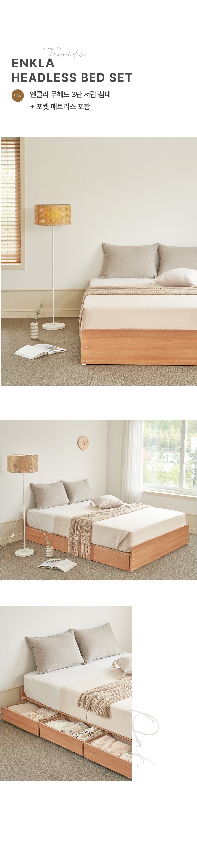 | 품명 | 퍼리든 엔클라 무헤드 3단 서랍 침대 + 포켓스프링 매트리스 S 오크 방문설치 | KC 인증정보 | 해당없음 |