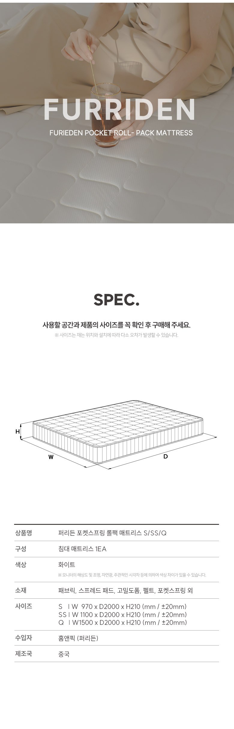 | 주요 소재 | 컨텐츠참조 | 제조자(수입자) | 매트리스 : 업체미제공 / 홈앤픽|서랍침대 : 업체미제공 / 홈앤픽(퍼리든) |