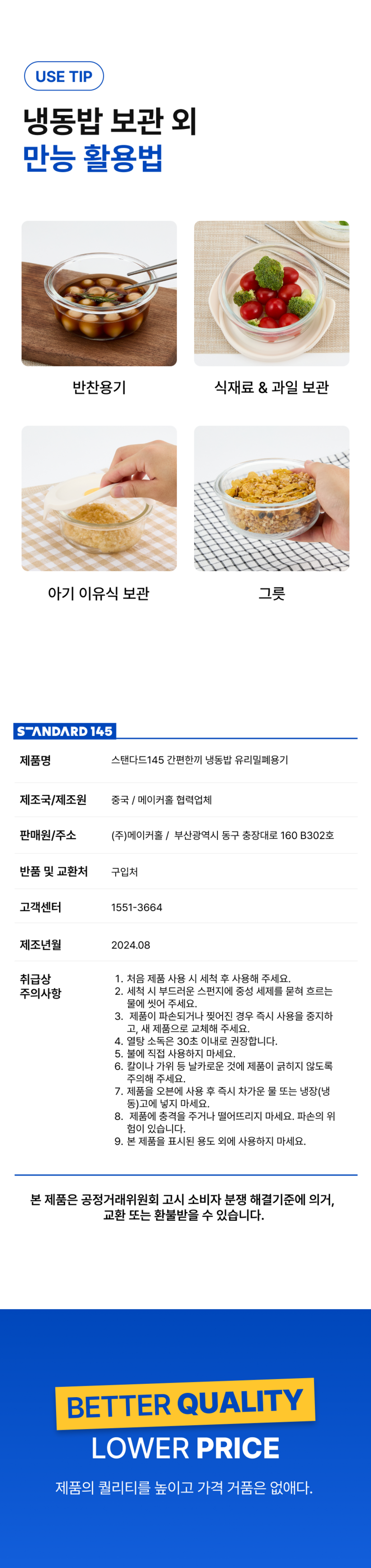 - ㆍ교환/반품에 관한 일반적인 사항은 판매자가 제시사항보다 관계법령이 우선합니다.