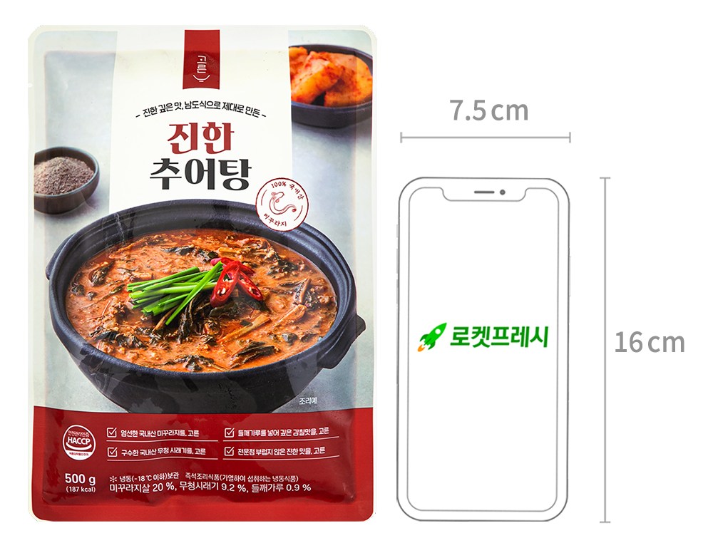| 배송방법 | 신선/냉장/냉동 | 배송비 | 무료배송 - 로켓프레시 상품 중 15,000원 이상 구매 시 무료배송 - 해당 서비스 가능 지역에 한함 |
