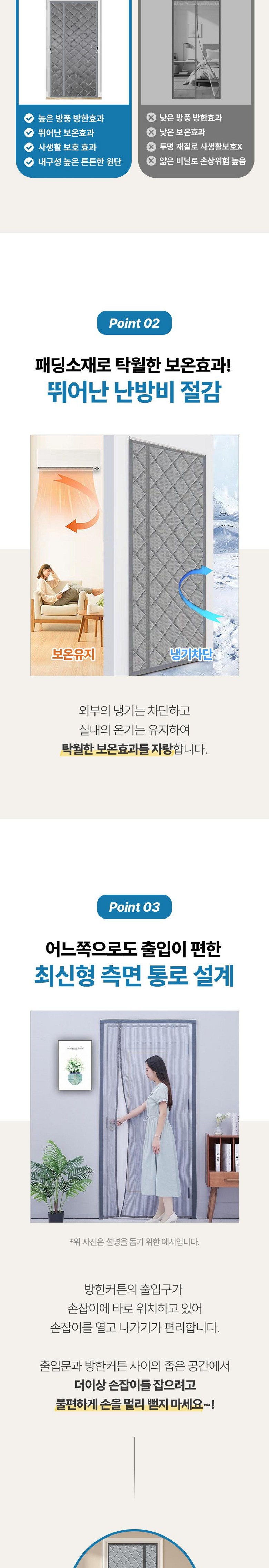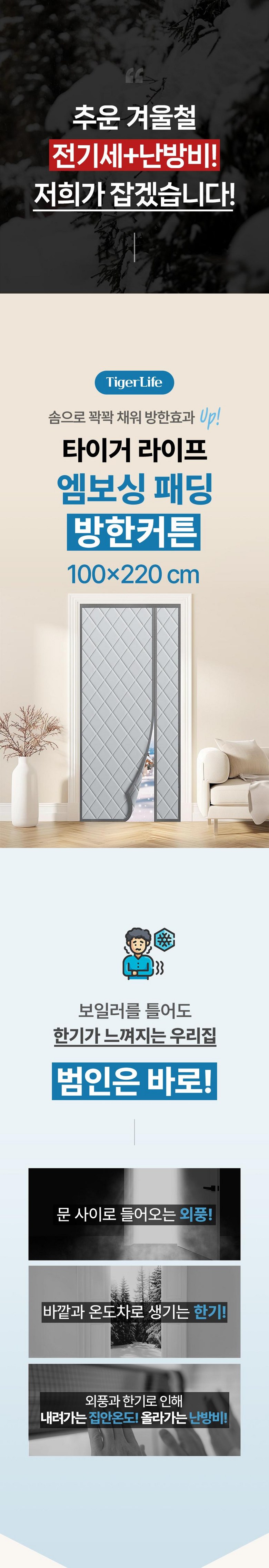 타이거라이프 출입이 편한 사이드형 자동자석 엠보싱패딩 현관 방풍비닐 방한커튼, 110 x 220c..., 1개