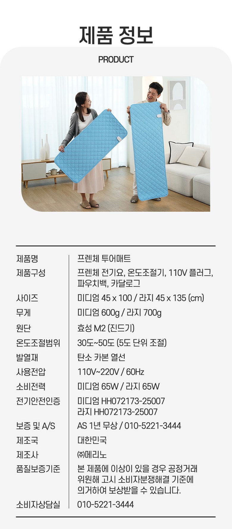 | 소비자상담 관련 전화번호 | 상품 상세페이지 참조 | ||