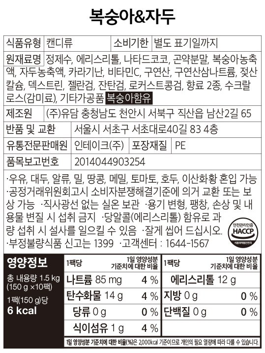 | 포장단위별 내용물의 용량(중량), 수량 | 150g x 20개 | 원재료명 및 함량 | 컨텐츠 참조 |