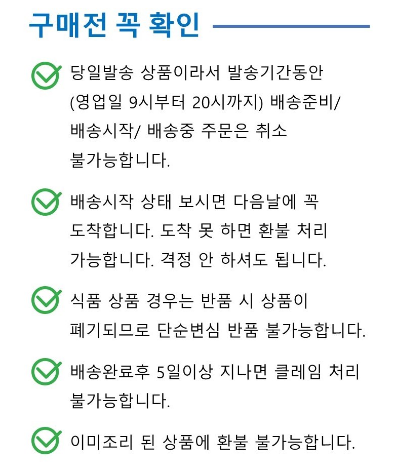 - ㆍ교환/반품에 관한 일반적인 사항은 판매자가 제시사항보다 관계법령이 우선합니다.