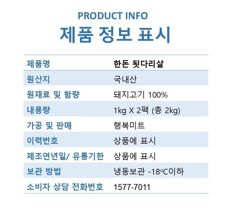 | 제조연월일, 소비기한 또는 품질유지기한 | 상품 상세페이지 참조 | 세부 품목군별 표시사항 | 상품 상세페이지 참조 |