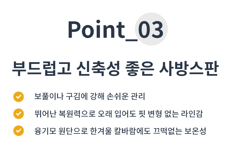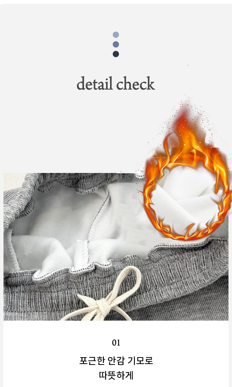 | 제품 소재 | 100% 폴리에스테르섬유 | 색상 | 기모 딥그레이, 기모 블랙, 기모 카키, 기모 화이트 |