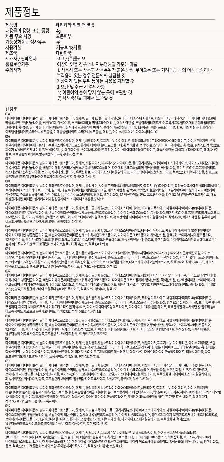 | 화장품제조업자, 화장품책임판매업자 및 맞춤형화장품판매업자 | 상품 상세페이지 참조 | 제조국 | 상품 상세페이지 참조 |
