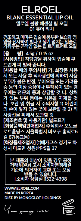| 화장품제조업자, 화장품책임판매업자 및 맞춤형화장품판매업자 | ㈜메가코스/(주)모노글로트홀딩스 | 제조국 | 대한민국 |