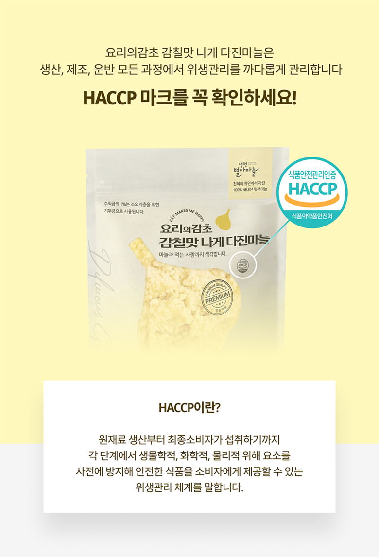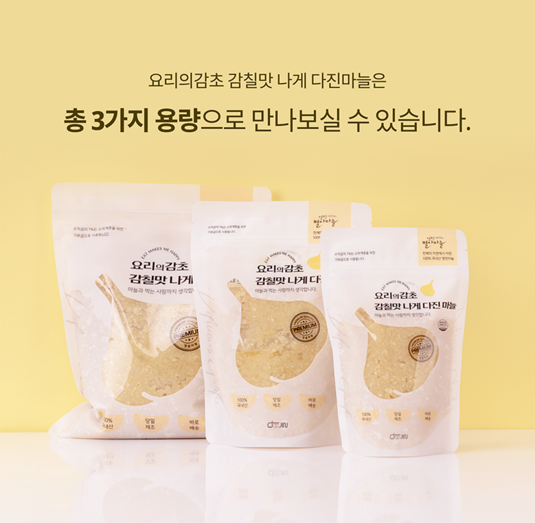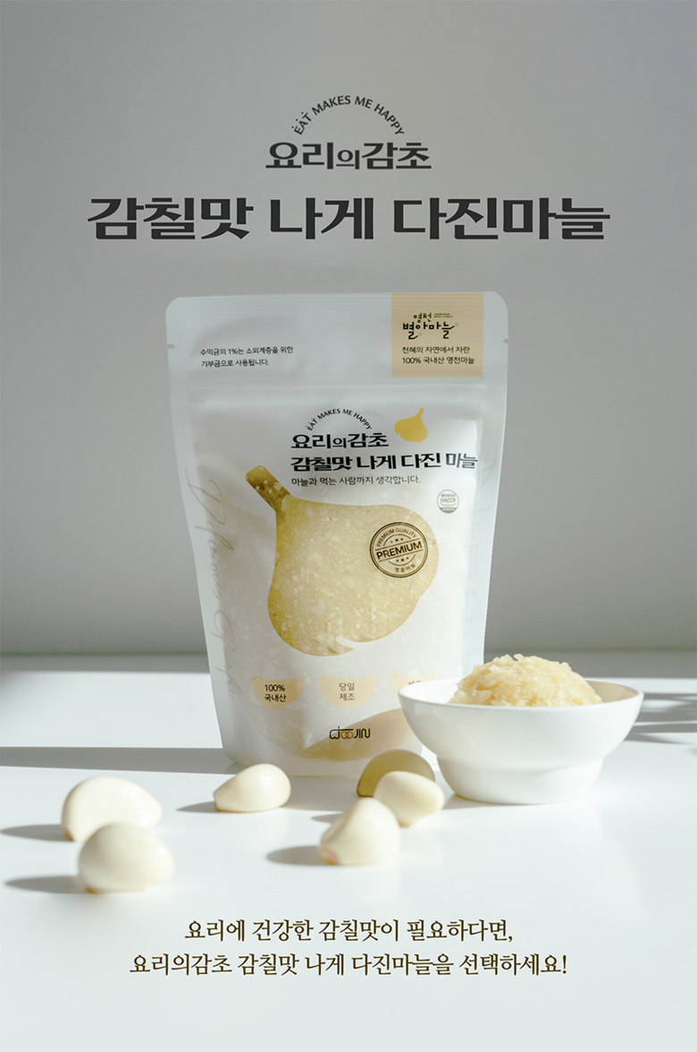 | 품목 또는 명칭 | 감칠맛나게 다진마늘 | 포장단위별 내용물의 용량(중량),수량,크기 | 포장단위별 200g,500g, 1kg |