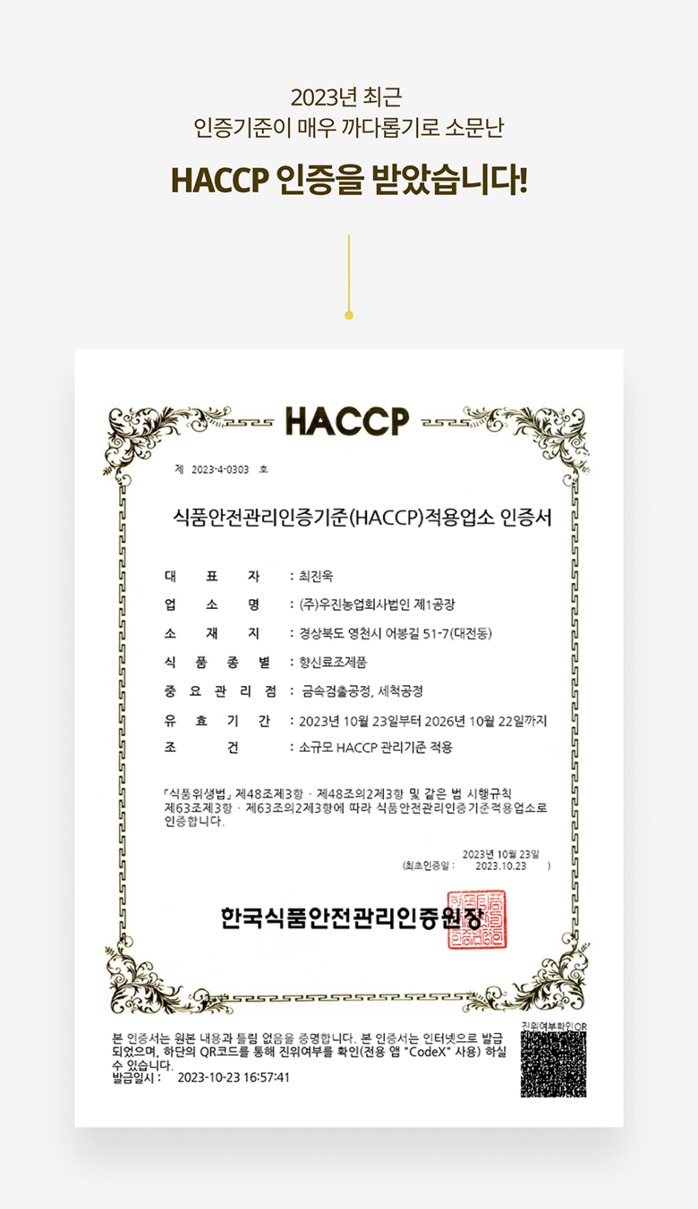 | 생산자(수입자) | (주)우진농업회사법인 | 원산지 | 국내산 |