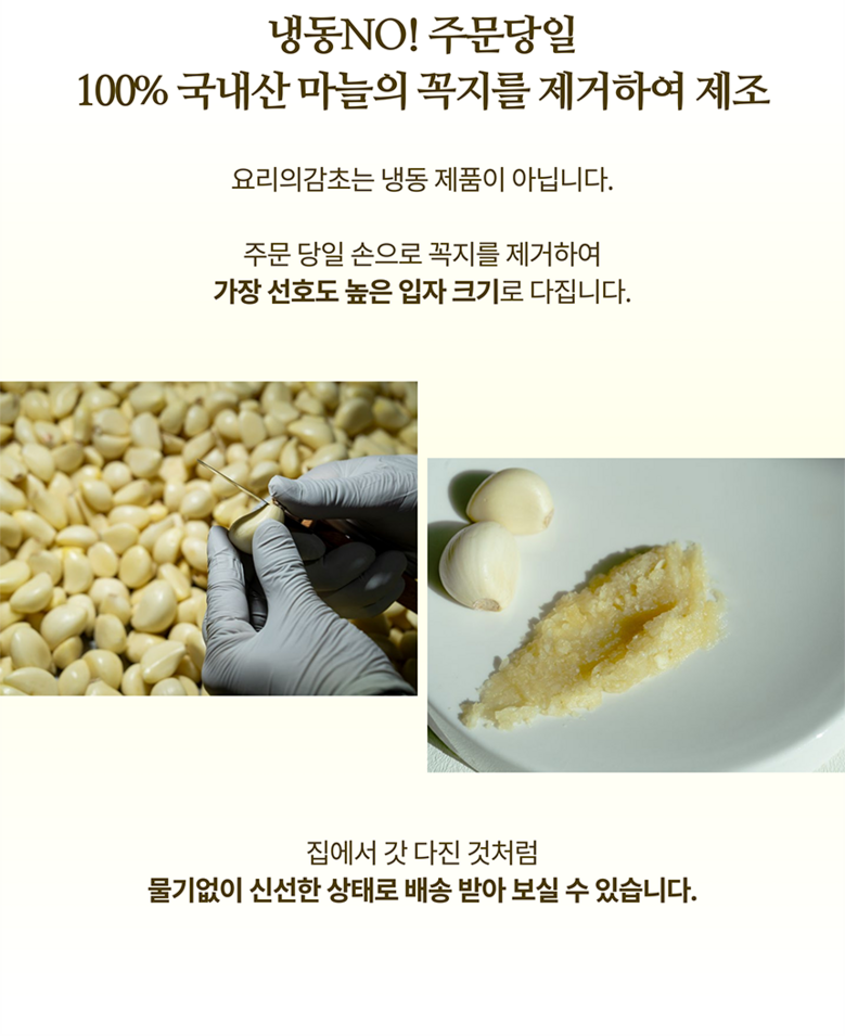 - 식품 가공형태: 꼭지제거 다진마늘