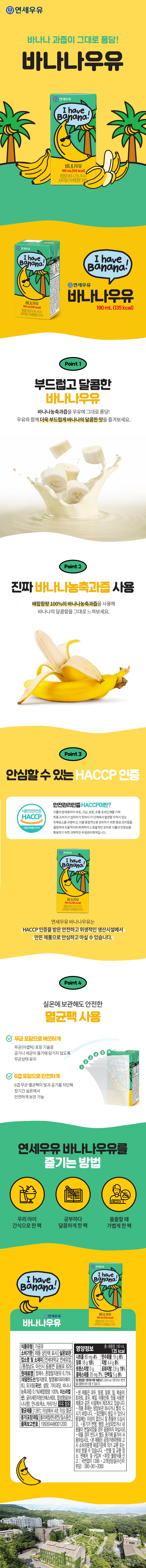 | 제품명 | 연세우유 바나나우유 | 식품의 유형 | 컨텐츠 참조 |
