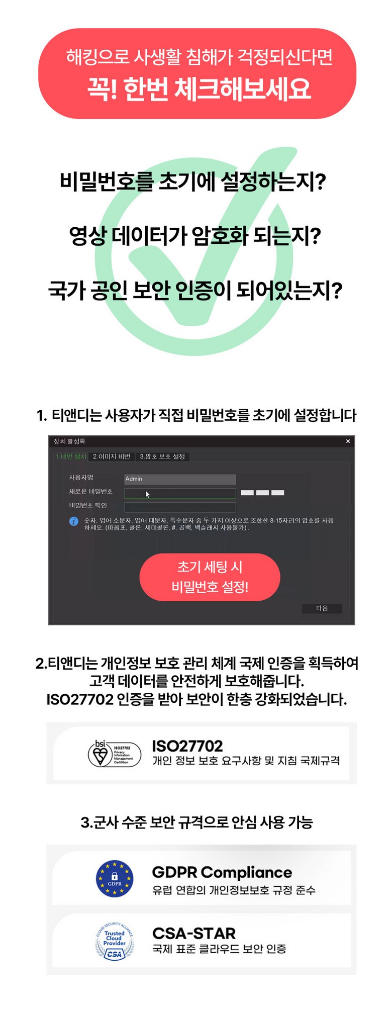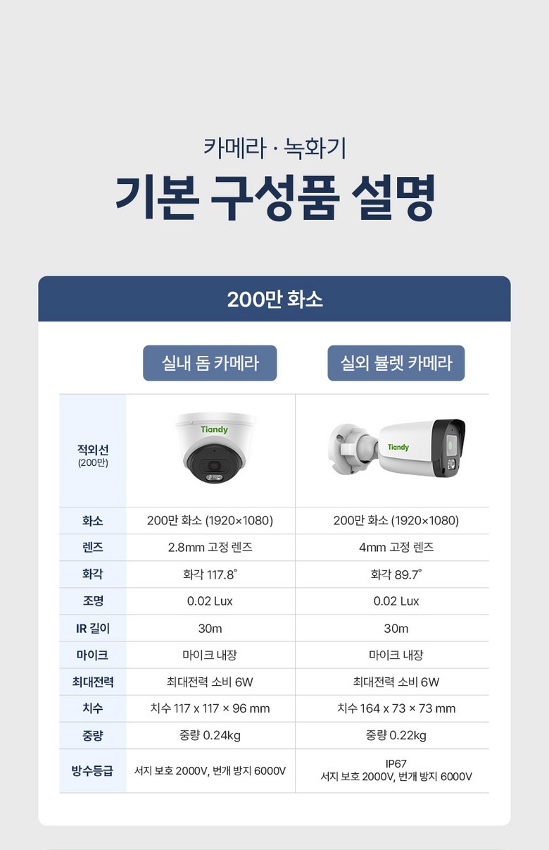 | 출시년월 | 1)TC-C320N : 23/12/2 // 2)TC-C321N : 24/01/28 // 3)TC-R3104 : 24/02/06 | 제조자(수입자) | Tiandy Technologies Co., Ltd. (다봄씨엔에스) |