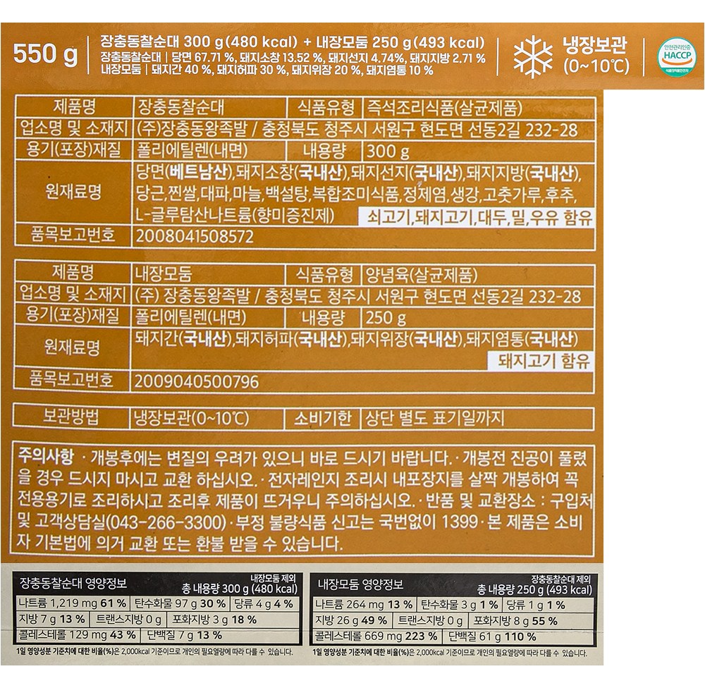 찰순대, 내장모둠(돼지간, 돼지허파, 돼지위장, 돼지염통)으로 구성되어 있습니다.