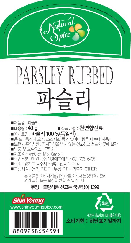 | 제품명 | 파슬리 | 식품의 유형 | 천연향신료 |