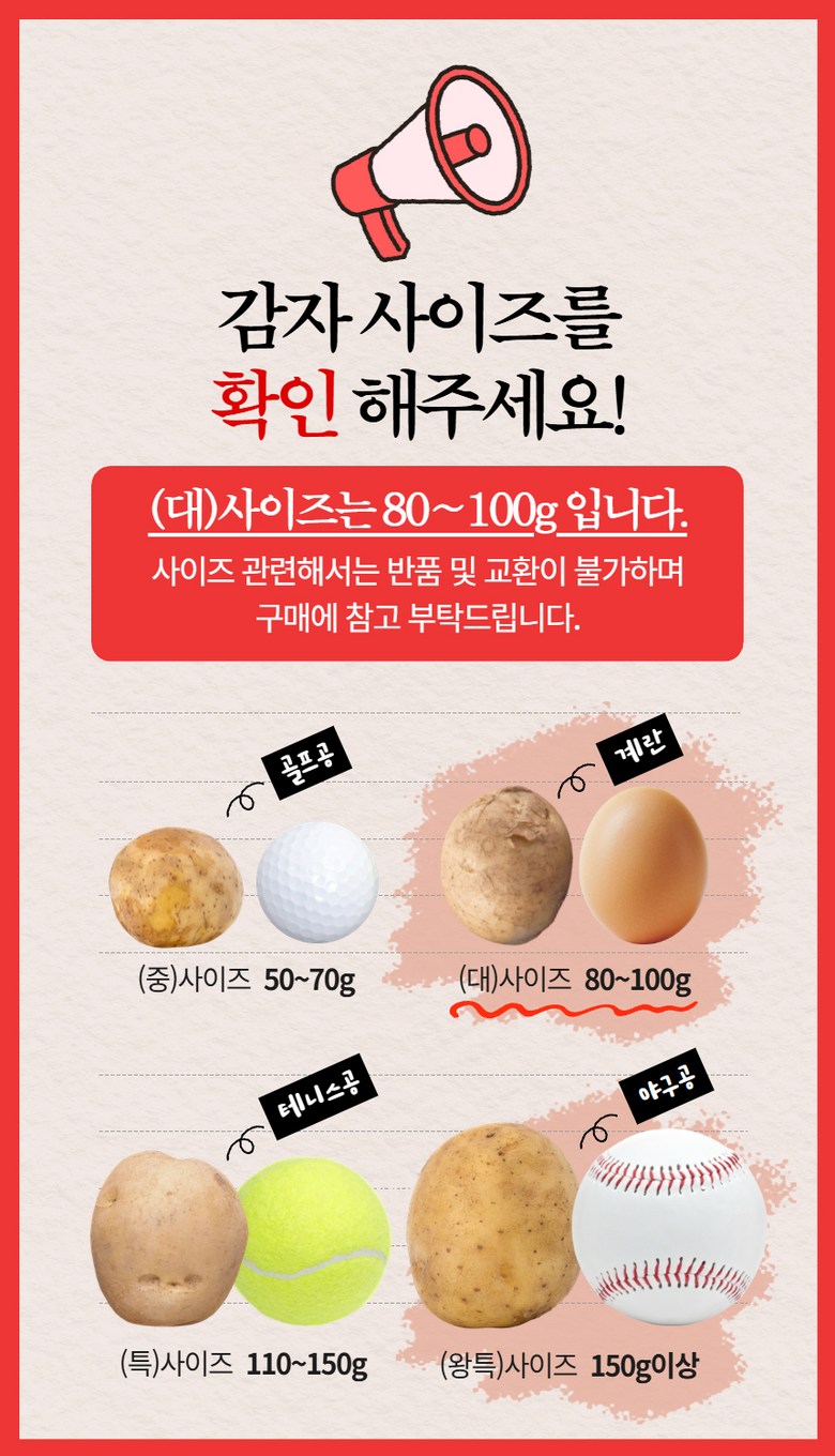 | 품목 또는 명칭 | 수미감자 | 포장단위별 내용물의 용량(중량),수량,크기 | 2kg,3kg,5kg,20kg |