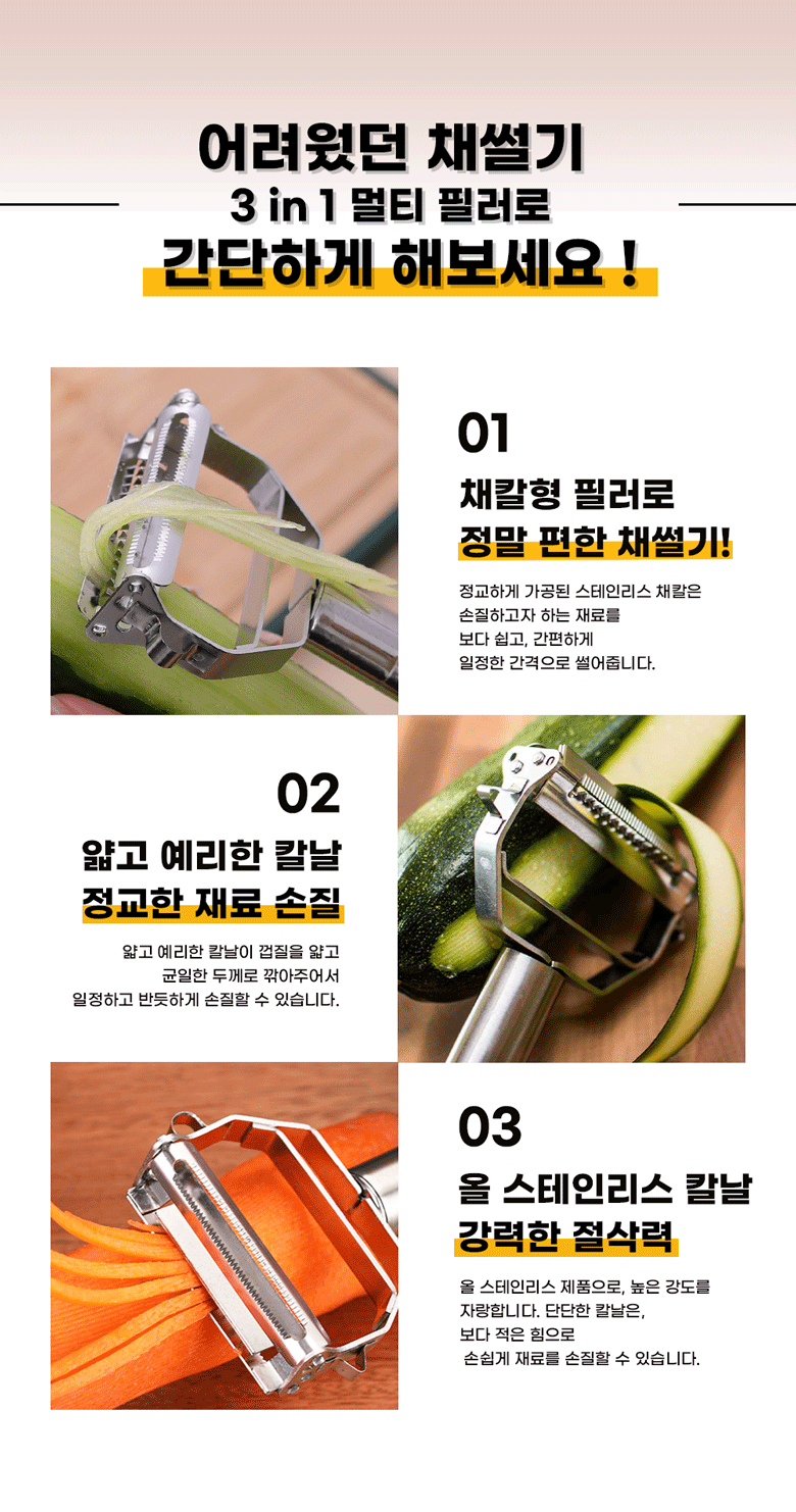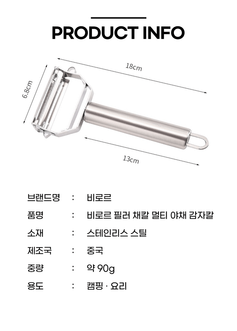 | 품명 및 모델명 | 비로르 스텐 멀티 필러 채칼 파 양배추 당근 감자칼 | 재질 | 스테인리스 |