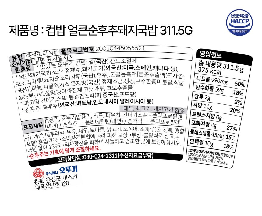 | 제품명 | 순후추돼지국밥 | 식품의 유형 | 컨텐츠 참조 |