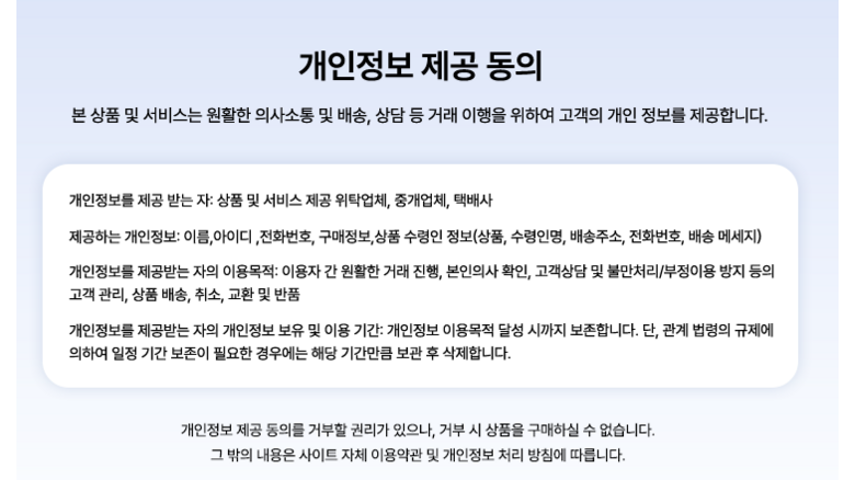 다만, 판매자의 제시사항이 관계법령보다 소비자에게 유리한 경우에는 판매자 제시사항이 적용됩니다.
