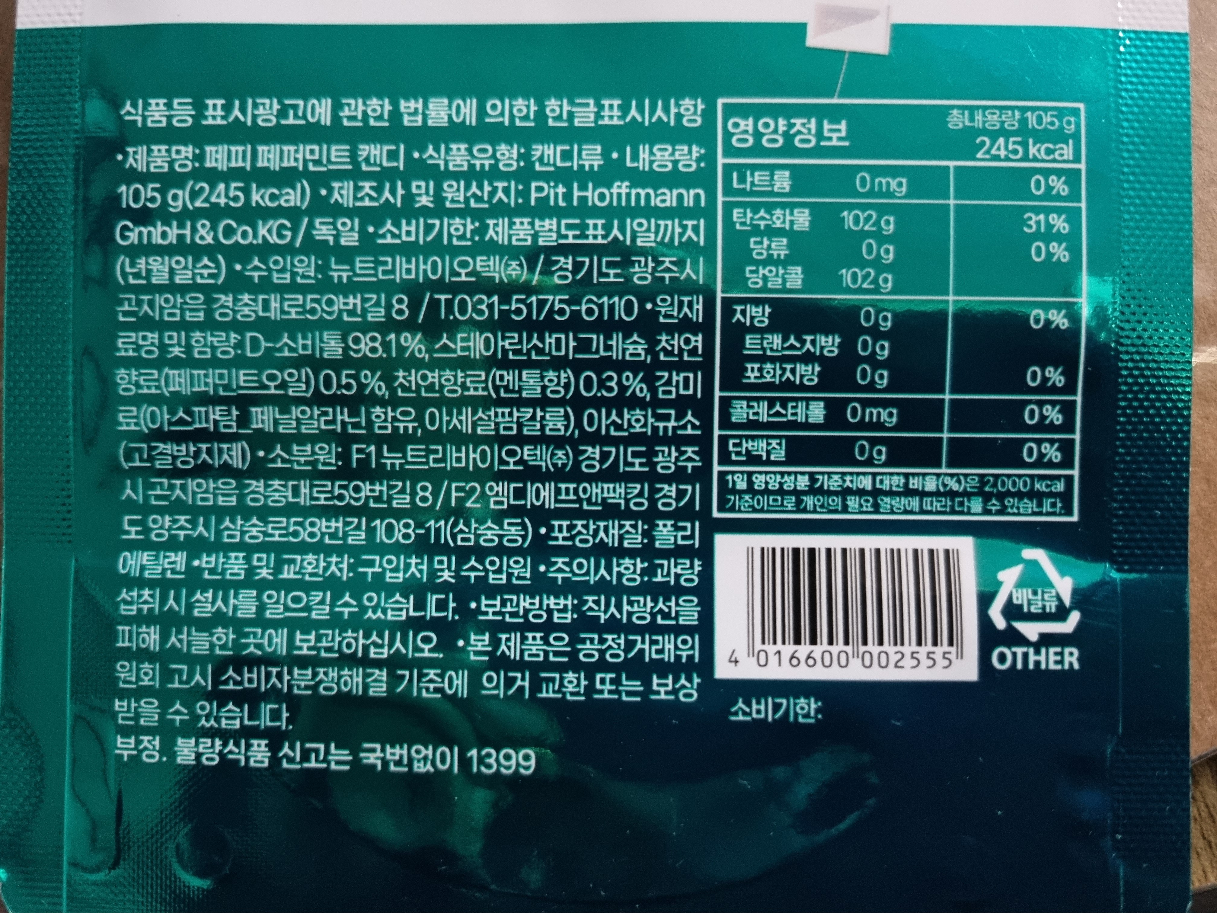 | 생산자 및 소재지 | 컨텐츠 참조 | 제조연월일, 소비기한 또는 품질유지기한 | 소비기한(또는 유통기한) : 2028년 03월 13일 이거나 그 이후인 상품 제조년월일 : 2025년 03월 15일 이후인 제조상품 |