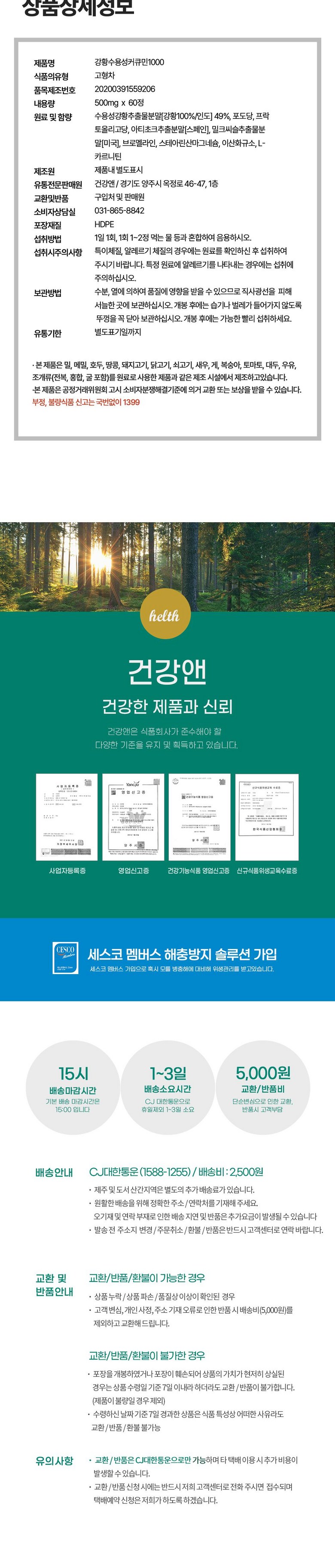 | 원재료명 및 함량 | 상품 상세페이지 참조 | 영양성분 | 상품 상세페이지 참조 |