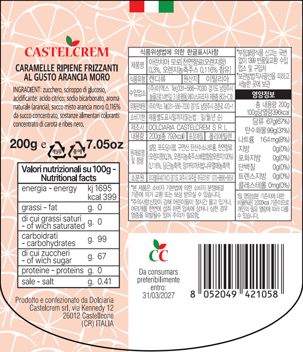 | 포장단위별 내용물의 용량(중량), 수량 | 레몬 200g + 모로오렌지 200g | 원재료명 및 함량 | 컨텐츠 참조 |
