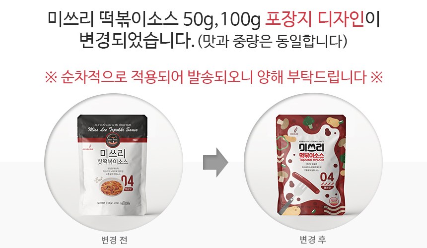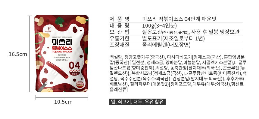 | 제품명 | 미쓰리 떡볶이소스 04 | 식품의 유형 | 컨텐츠참조 |