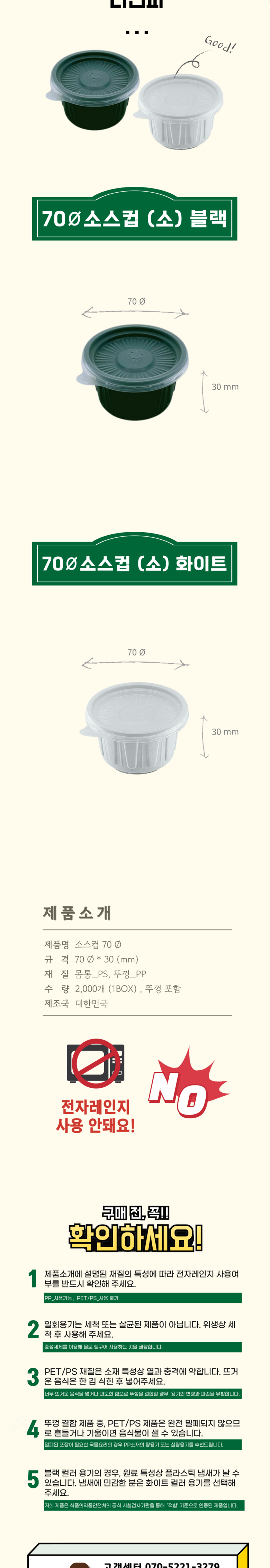 | 구성품 | 몸통 뚜껑 각 2000개 | 크기 | 70Øx30mm 70ml |