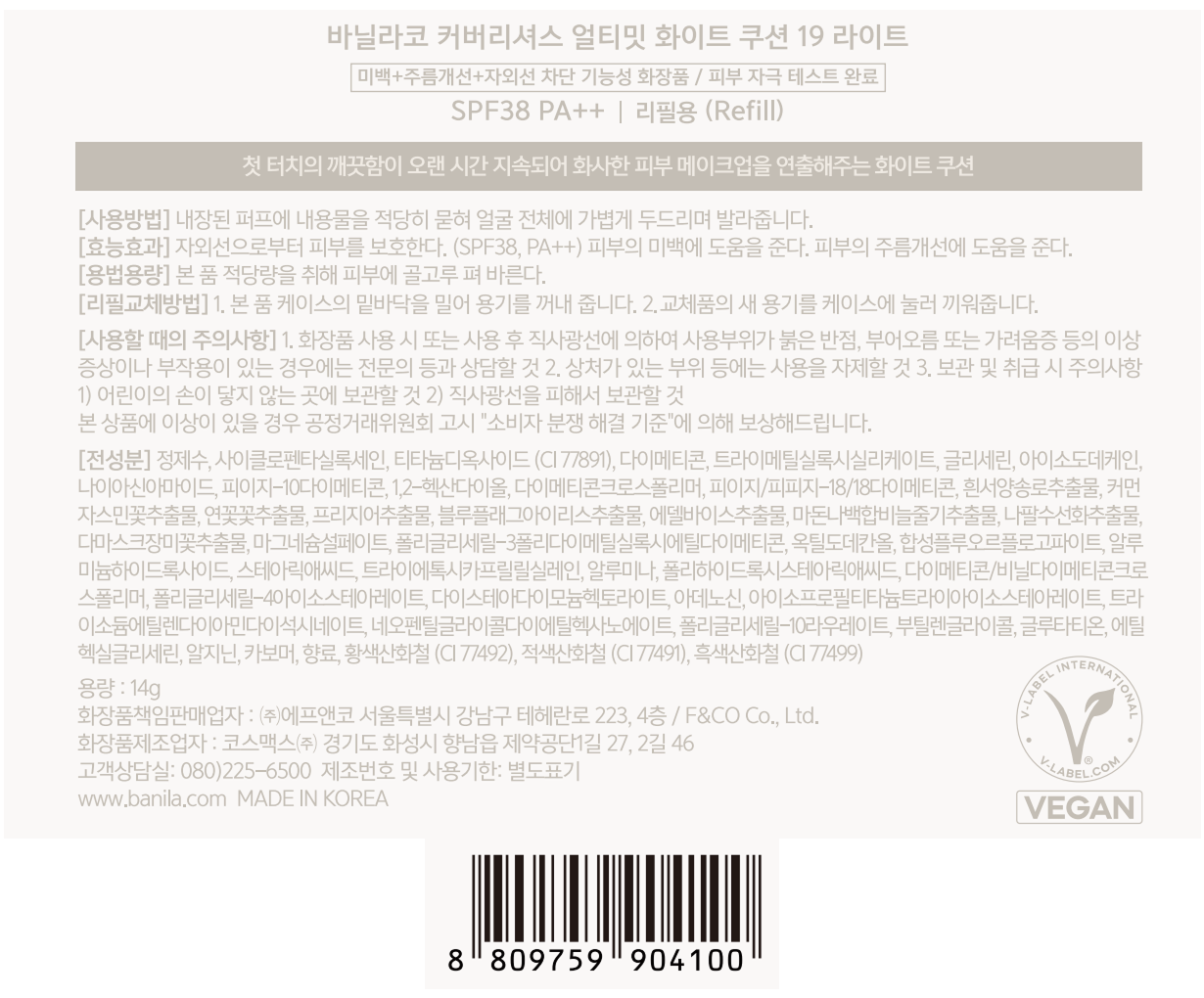 | 용량(중량) | 파운데이션 14g + 리필 14g | 제품 주요 사양 | 컨텐츠 참조 |