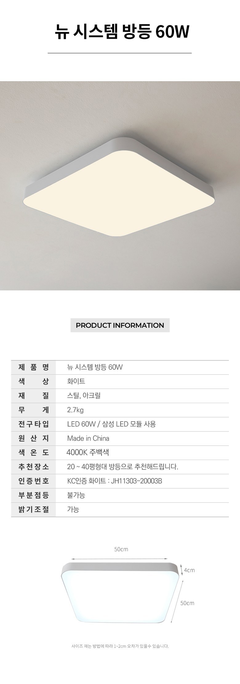 | 출시년월 | 상세 설명 참조 | 제조자(수입자) | 케이시조명 |