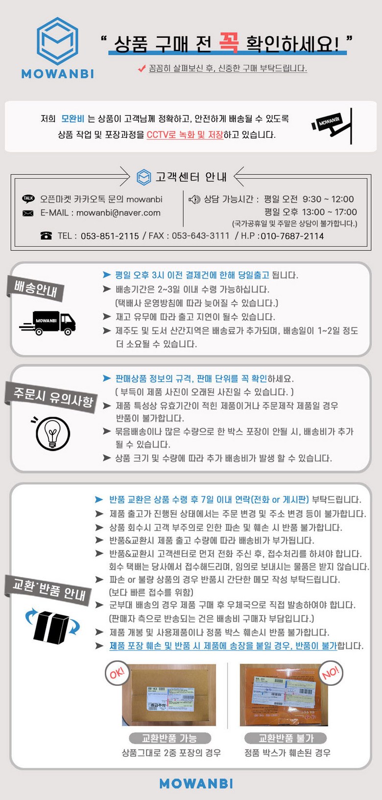 - ㆍ교환/반품에 관한 일반적인 사항은 판매자가 제시사항보다 관계법령이 우선합니다.