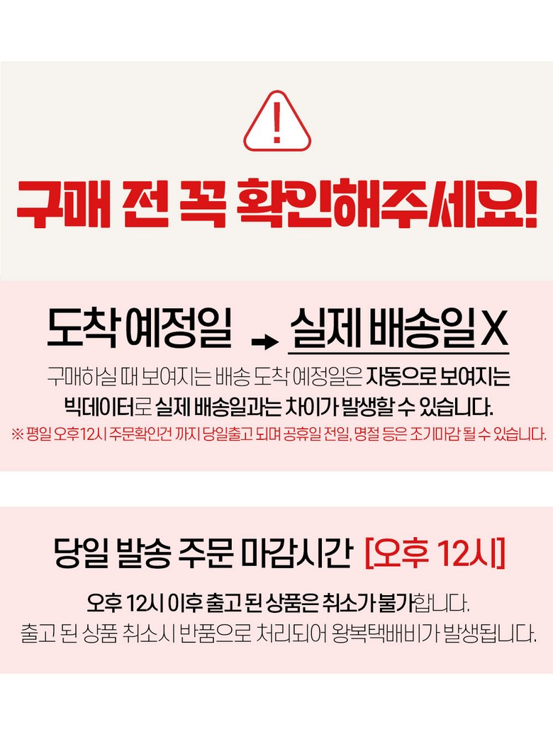 | 교환/반품 비용 (왕복비용) | 3,500원 - 단, 고객 변심의 경우에만 발생 - 도서산간 및 일부 지역 추가비용 발생 |