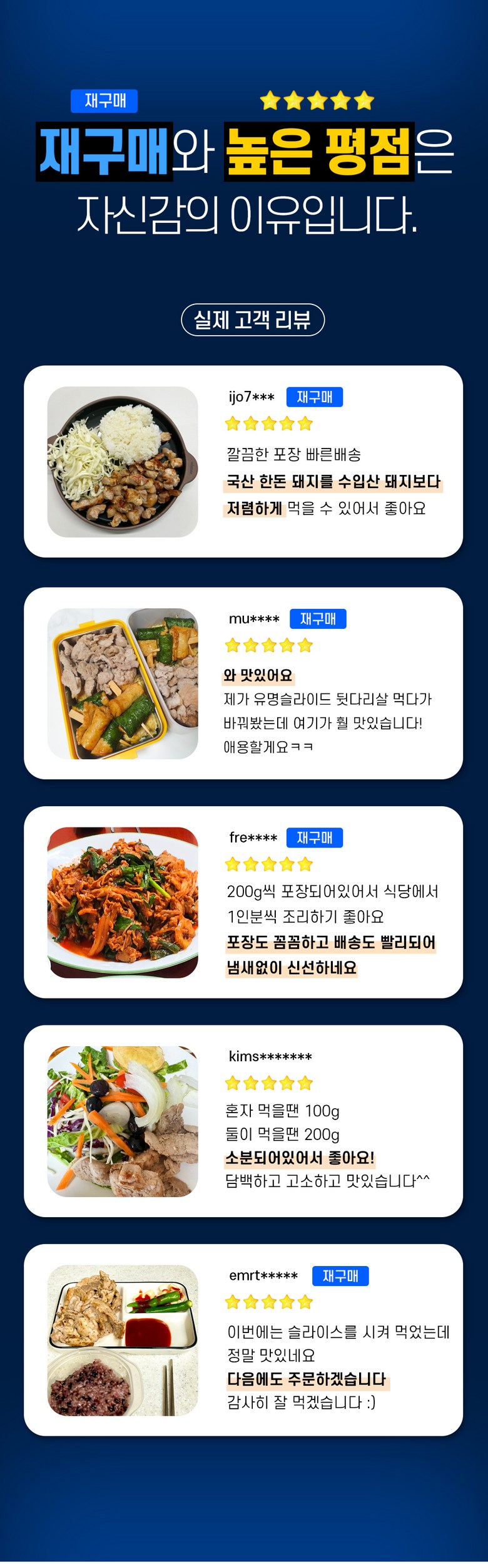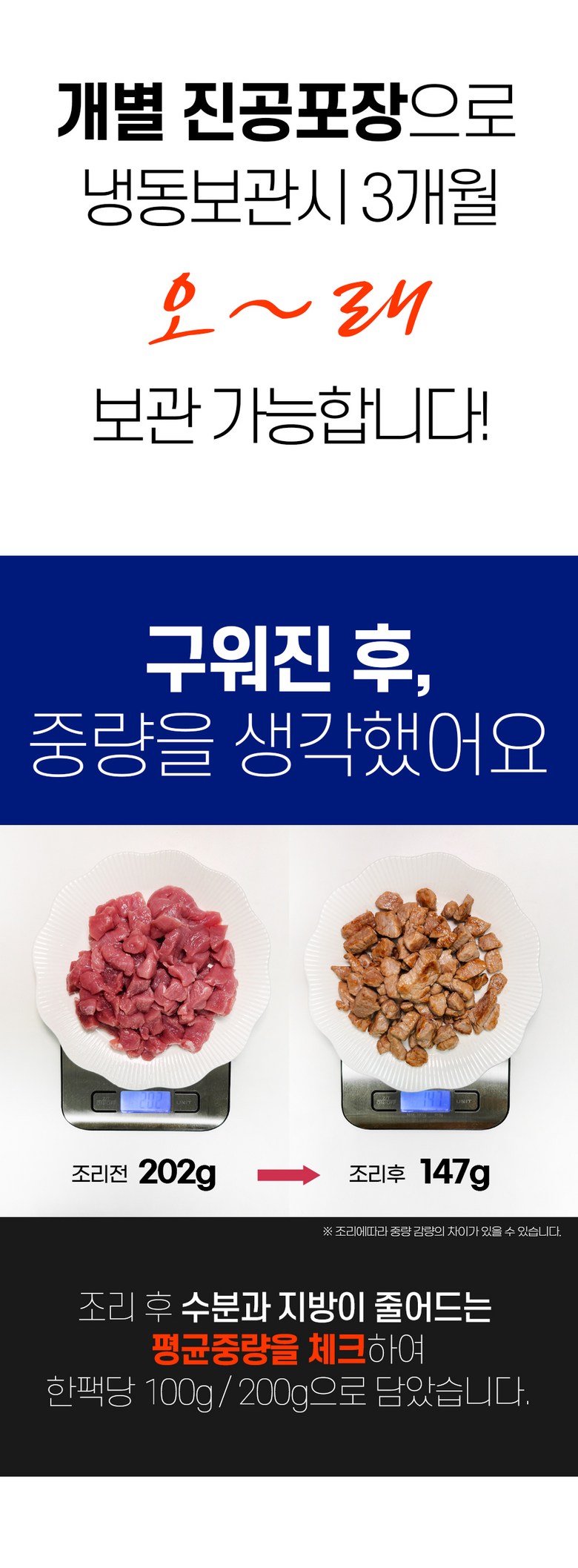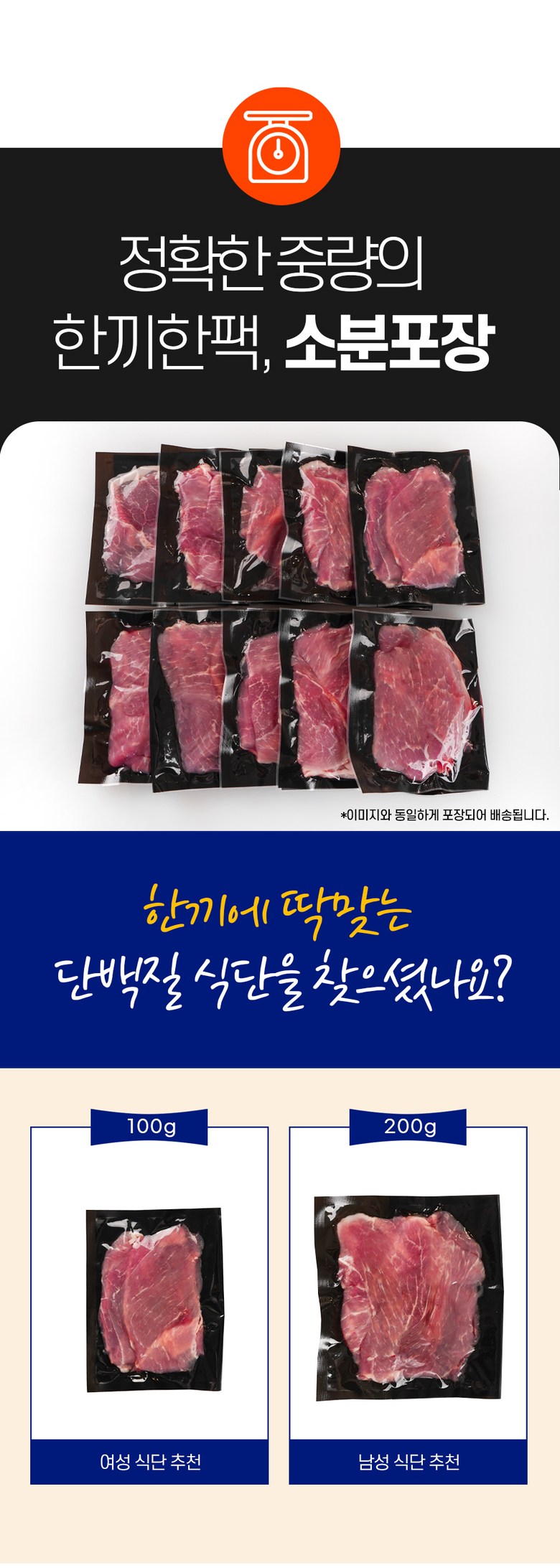 | 품목 또는 명칭 | 뒷다리살 | 포장단위별 내용물의 용량(중량),수량,크기 | 100g 10팩 / 150g 10팩 / 200g 10팩 |