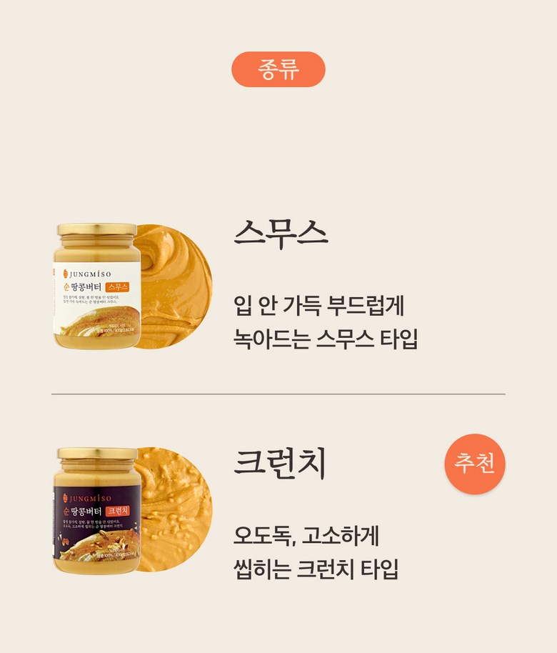 | 제품명 | 정미소 순 땅콩버터 크런치 | 식품의 유형 | 땅콩버터 |