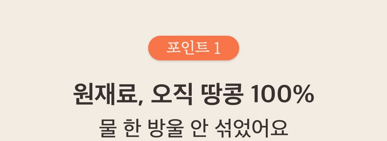 | 포장단위별 내용물의 용량(중량), 수량 | 400g | 원재료명 및 함량 | 볶음 땅콩(외국산 : 아르헨티나, 미국, 호주 등) 80%, 볶음 땅콩 분태(외국산 : 아르헨티나, 미국, 호주 등) 20% |