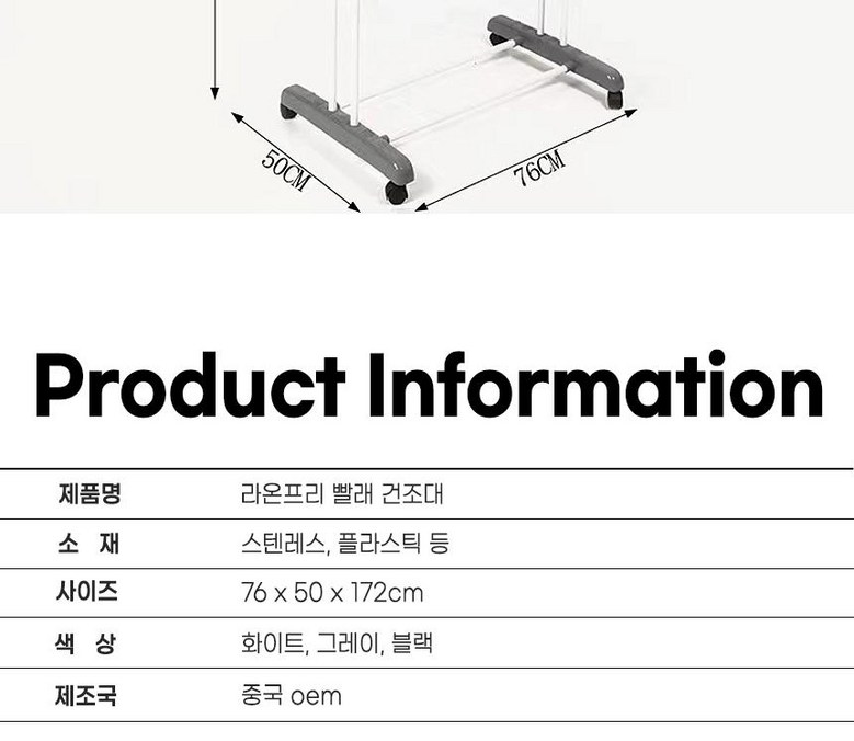 | 품명 및 모델명 | 라온프리 튼튼한 접이식 빨래 건조대 | 인증/허가 사항 | 해당없음 |
