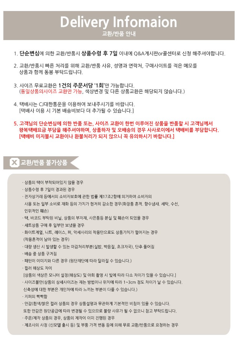 - ㆍ모니터 해상도의 차이로 인해 색상이나 이미지가 실제와 달라, 고객이 단순 변심으로 교환/반품을 무료로 요청하는 경우