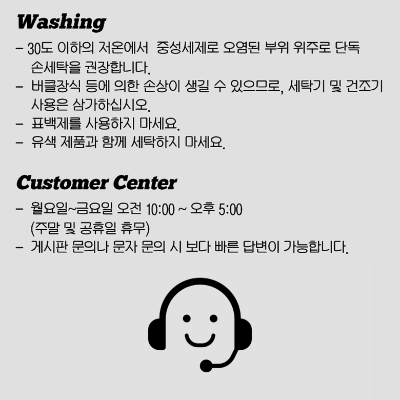 - ㆍ모니터 해상도의 차이로 인해 색상이나 이미지가 실제와 달라, 고객이 단순 변심으로 교환/반품을 무료로 요청하는 경우