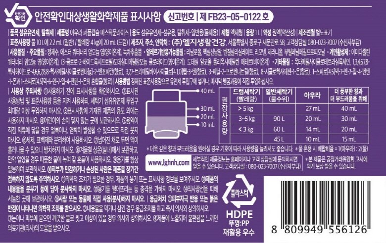 - 섬유유연제 용도: 일반 섬유유연제