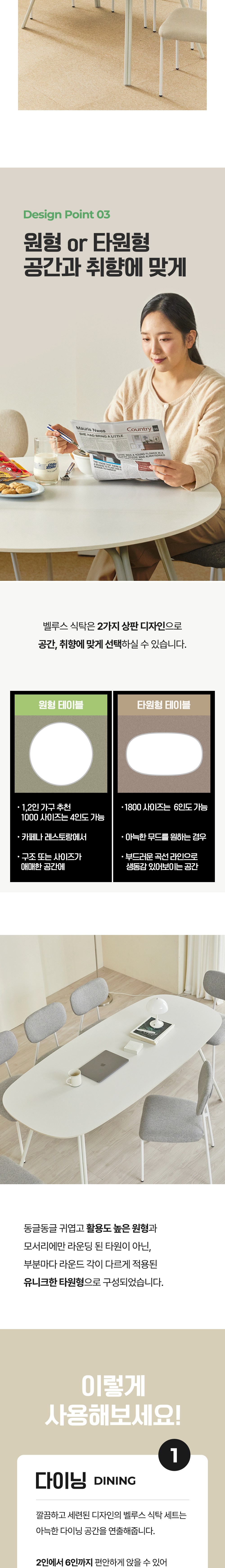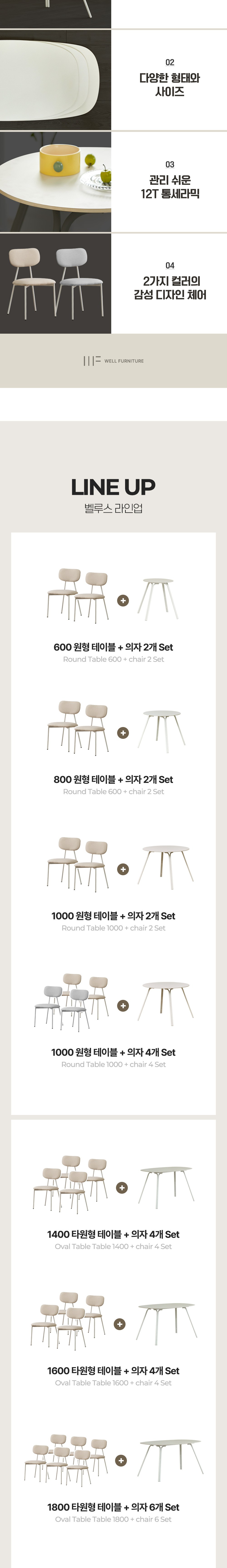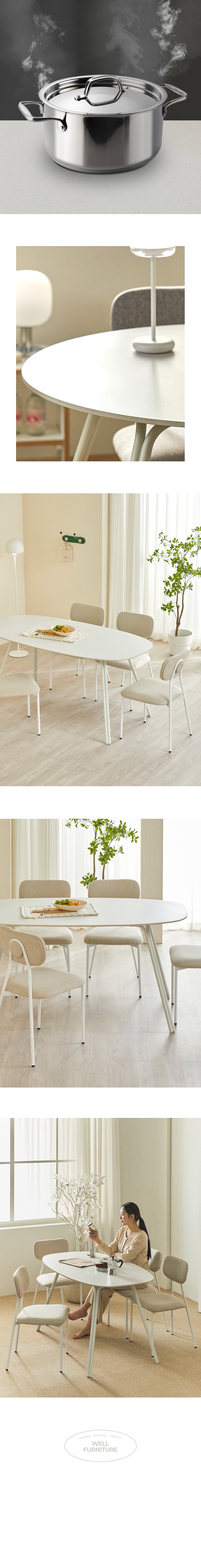 | 색상 | 컨텐츠 참조 | 구성품 | 타원형 1400_화이트_상판, 의자4p |