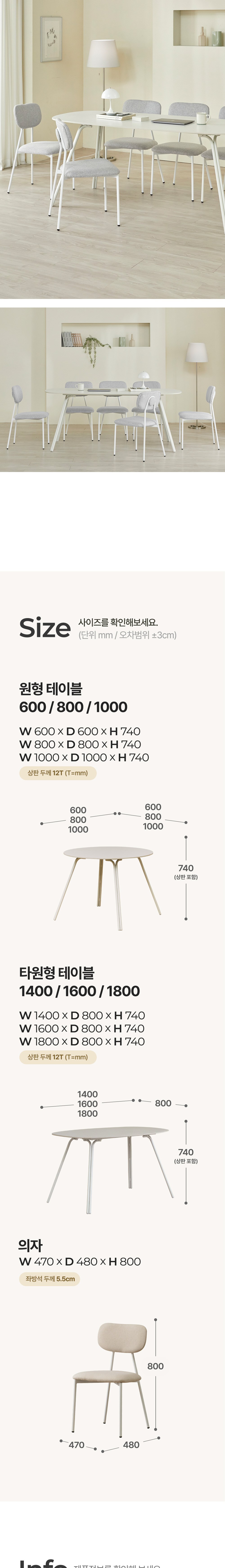 - 사이즈: 식탁(1400 x 800 x 740 mm), 의자(470 x 480 x 800 mm)
